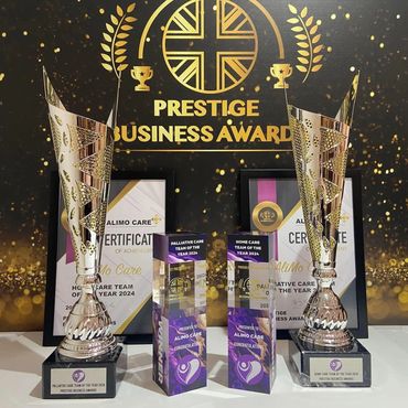 We are absolutely delighted to announce that we have been honoured with not one, but two prestigious awards: Palliative Care Team of the Year 2024 and Home Care Team of the Year 2024, at this year’s Prestige Business Awards!